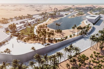 Al Ain resort is a residential proposal for a remote space in Al Ain area. The design approach takes inspiration from its surrounding topology and utilizes elements from the encircling oasis and lagoon; meshing both the ground and structure into one harmonious entity, while creating a variety of living spaces within a reduced footprint.