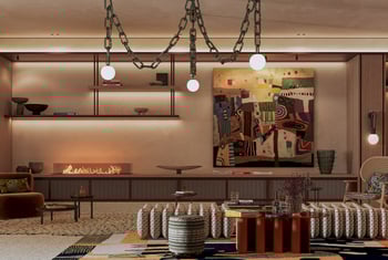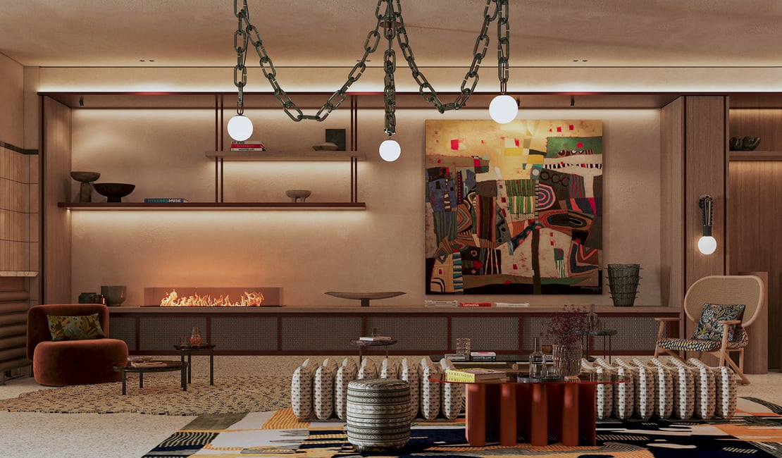 A nine-story building in Athens transformed into a serviced aparthotel with studio, one bedroom, and two bedroom units. The design maintains the building’s urban character, softened by an organic Amazonia-inspired palette of colours, textures, and crafted detail.